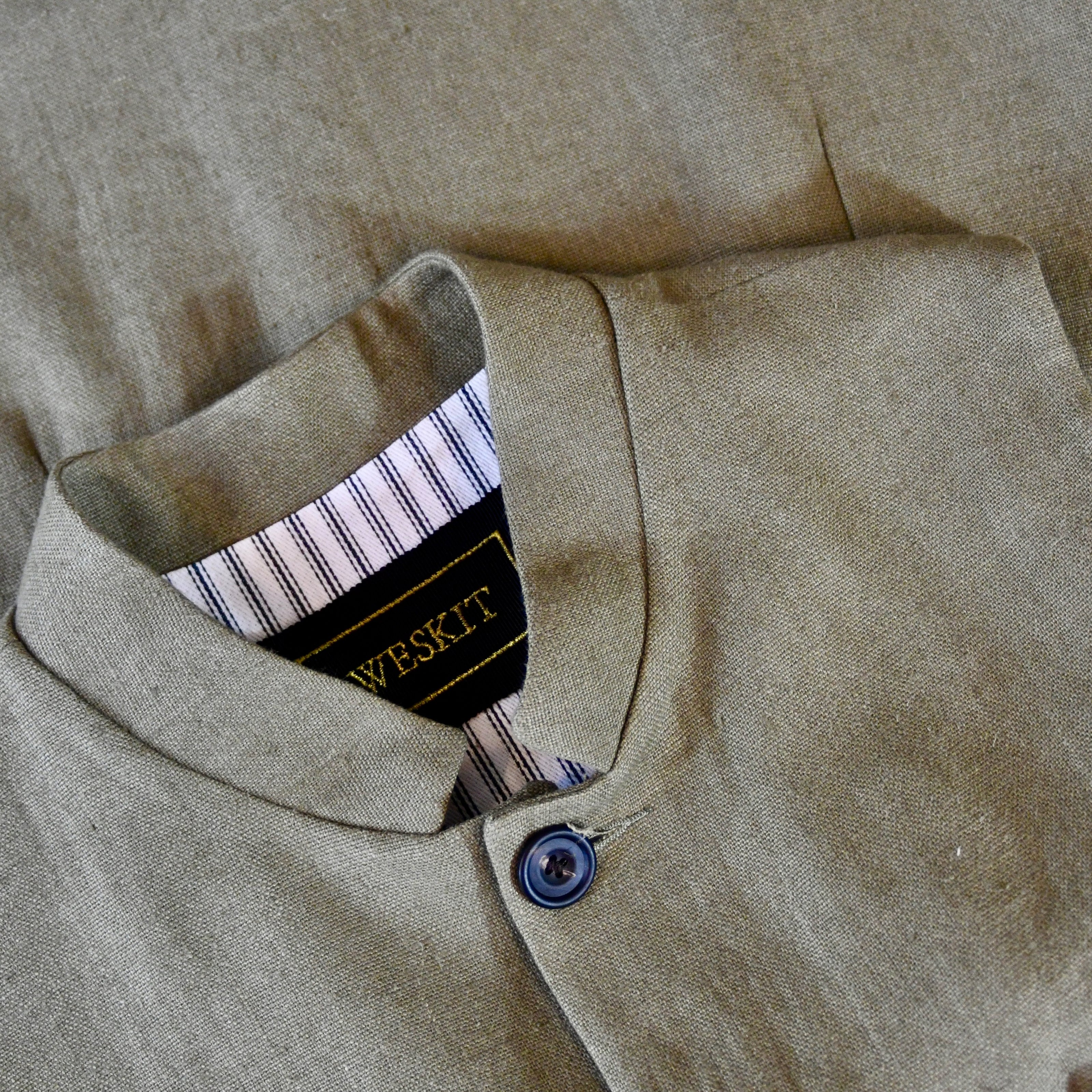 Our waistcoats are lined in Cotton Ticking.