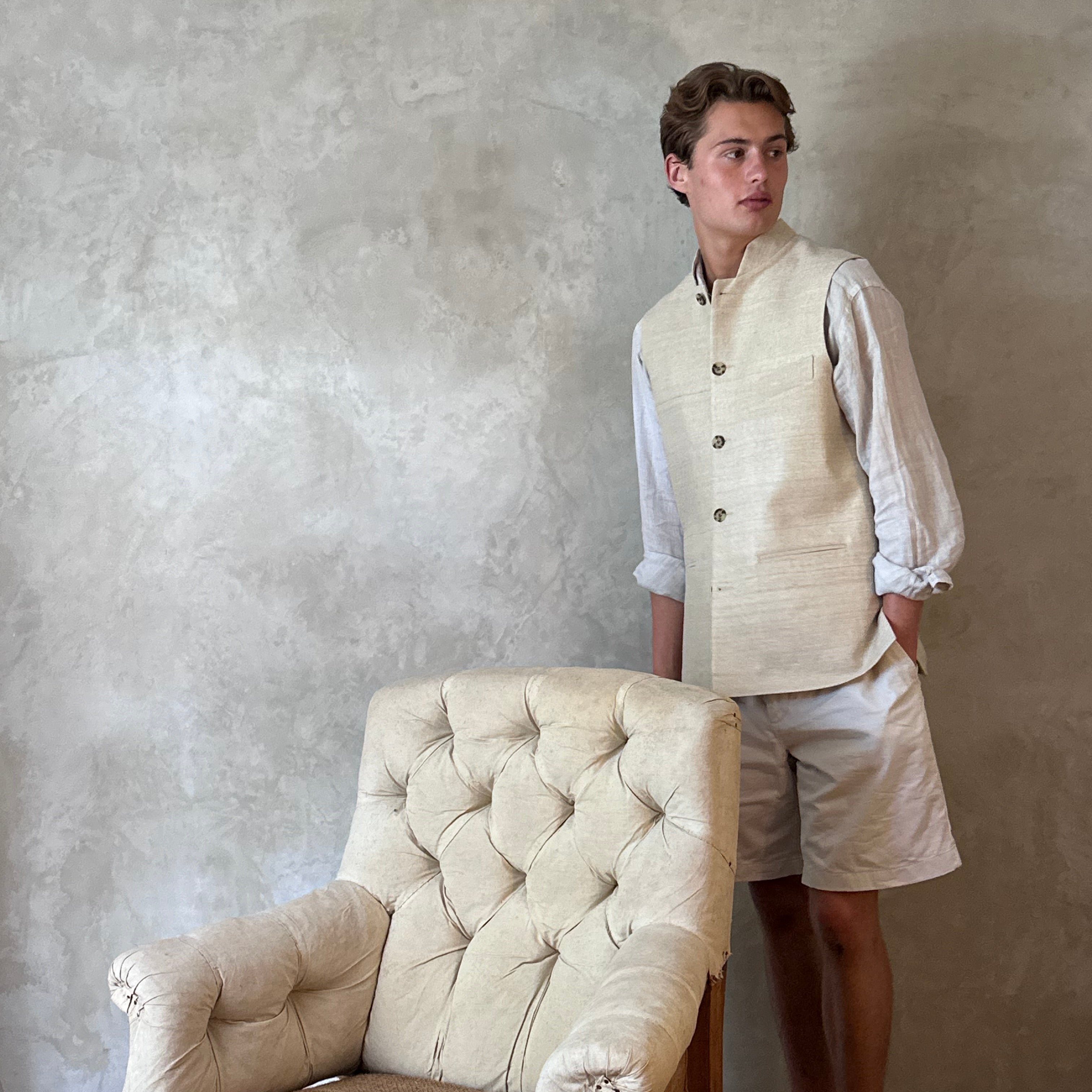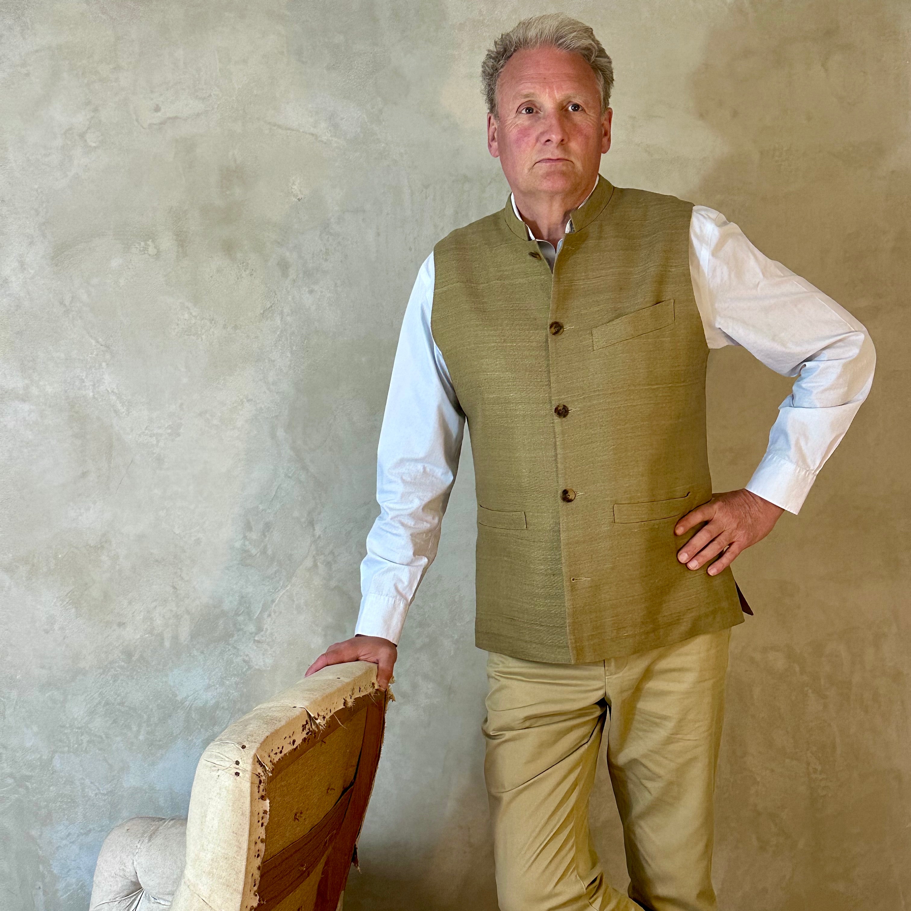 Tailored Cut Waistcoat in Khaki Silk Matka