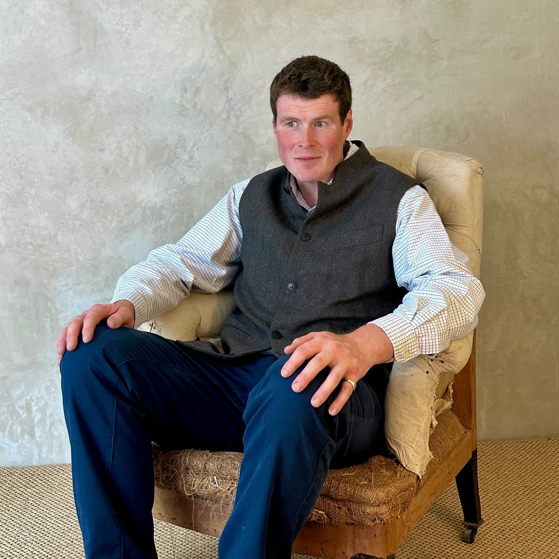 A classic cut waistcoat in size 44" in a wonderful Herringbone Flannel woven in Yorkshire. Middling in weight this is a superb lambswool-cashmere mix flannel that holds, wears and handles magnificently.