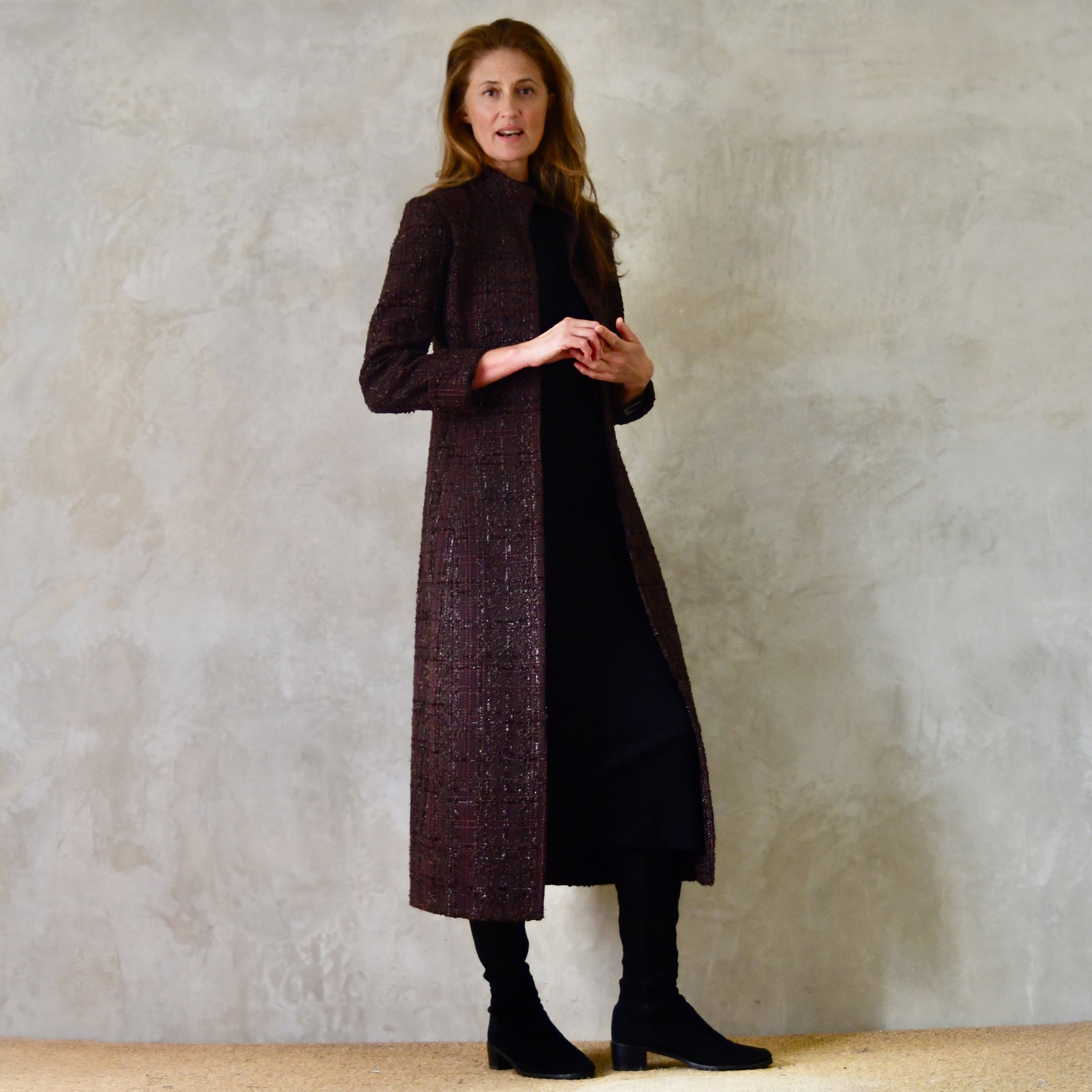 The Biffin in Rich Wine Coloured Metallic Boucle