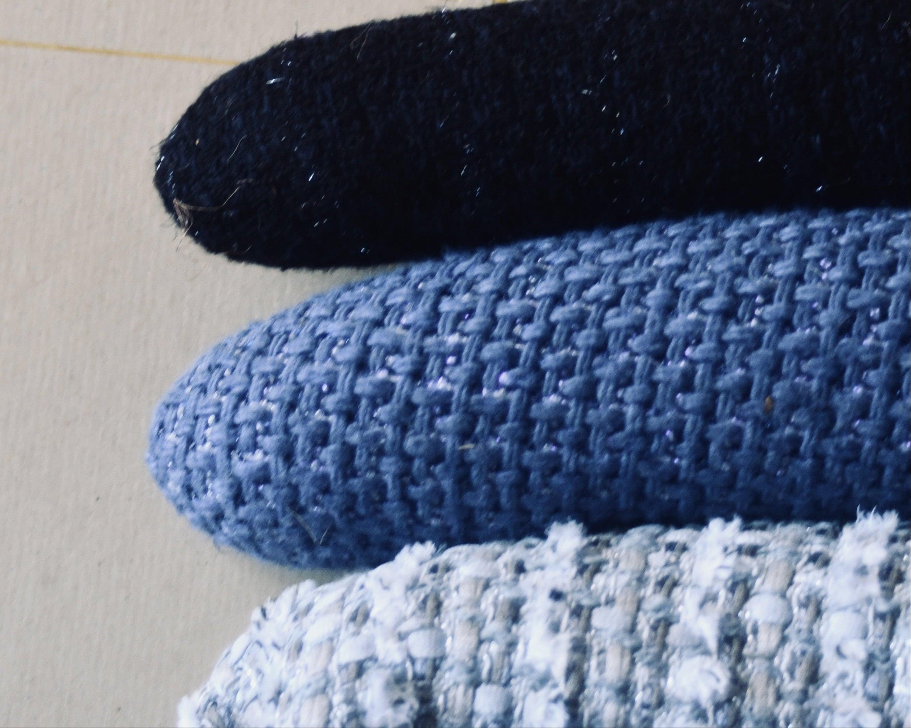 All our bouclés are limited editions, woven for us by Linton Tweeds in Carlisle.