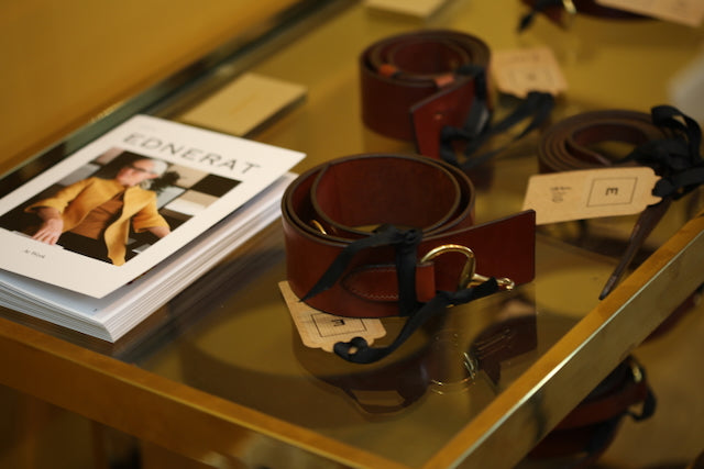 Designed together with Emma Baker-Jones of ESB Leather these belts are a wonder. Superb British Saddle Leather set with solid brass fittings, we conceived these belts together in her delightful workshop and at her kitchen table in the middle of the undulating Herefordshire hills.