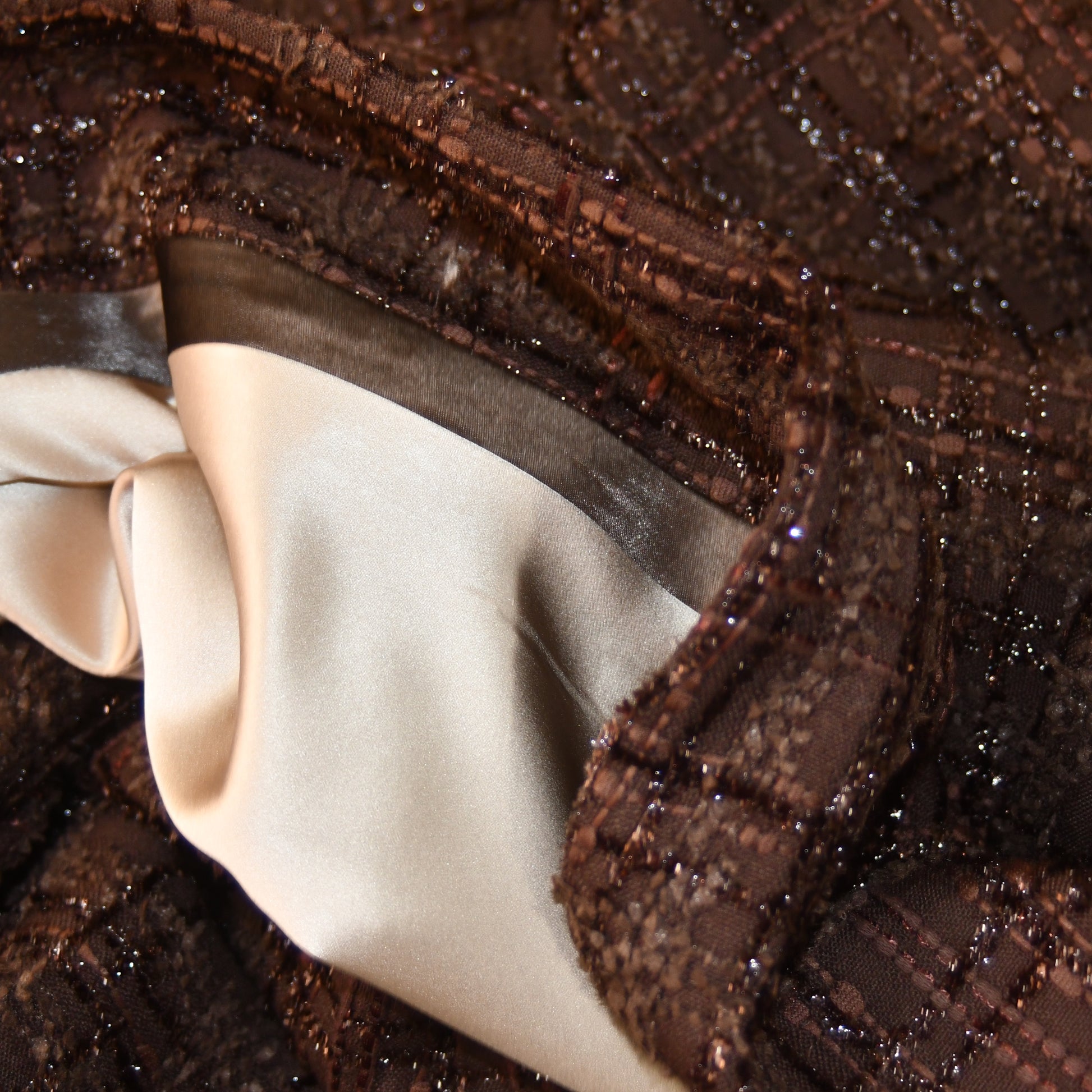Lined in Stone Silk with a Dark Brown Satin Trim.